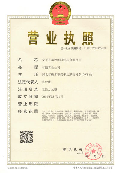 Copyright @ 2019 安平縣思邁絲網制品有限公司 備案號: 冀ICP備14004411號-1 固 話:- 手 機:15175805556地 址:河北省衡水市安平縣安平鎮北張沃村79號